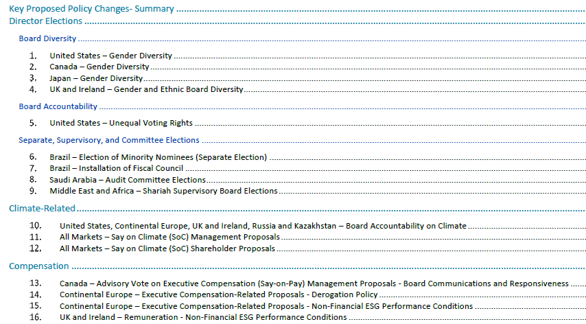 All Marketsで追加されたSay on Climate の Managemet proposalsとShareholder Proposals。日本ではManagement側から出すことは今のところないと思われるので株主提案の12をみてみる。以下を考慮して判断するとのこと、特に変わりはない気がします